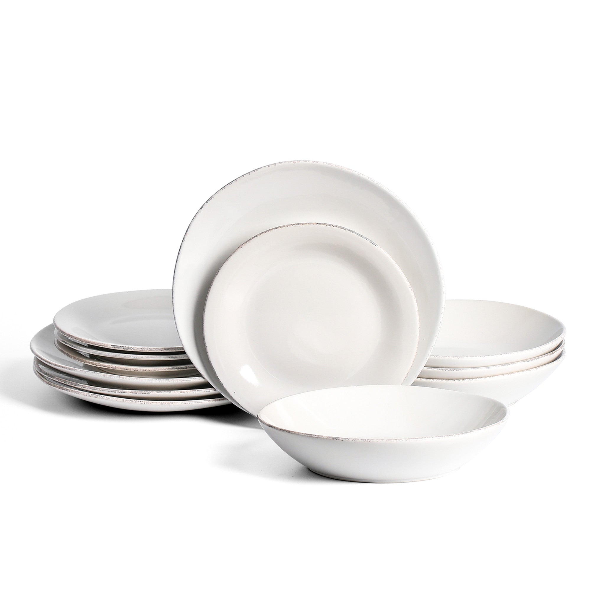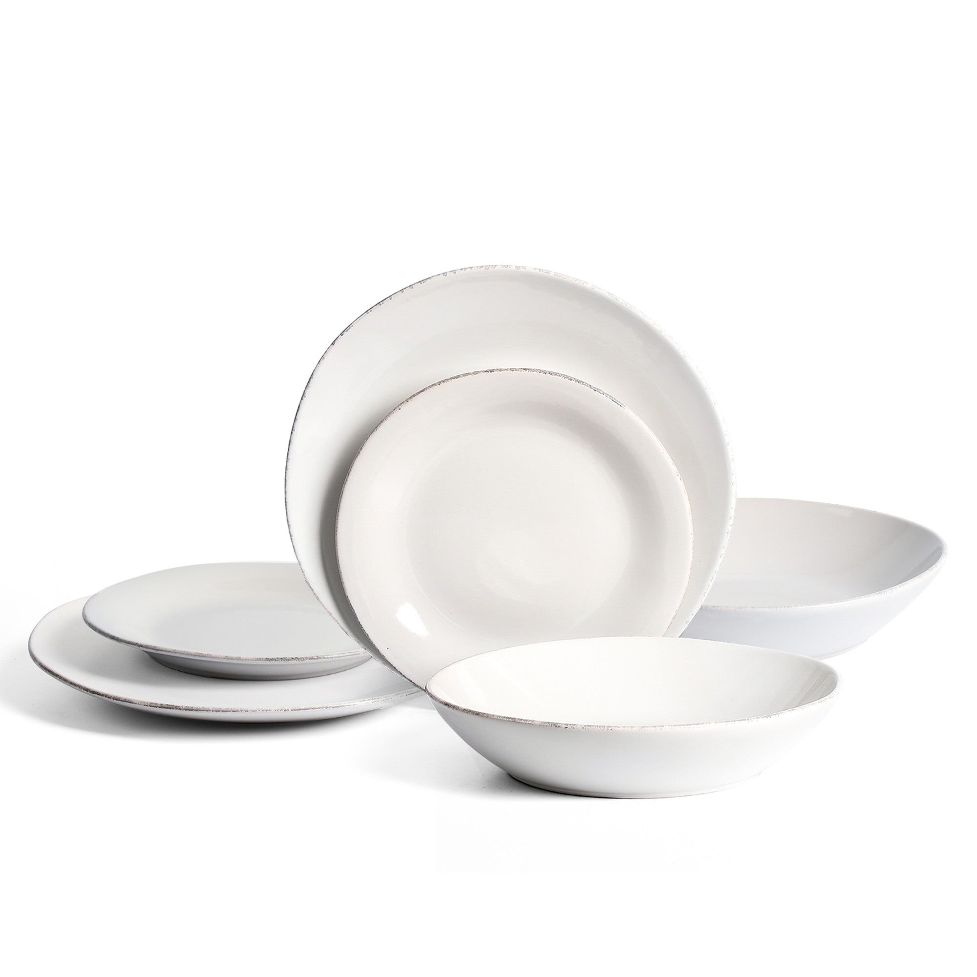 The essence of lifelong dinnerware: beautiful, warm, timeless, and dependable. Featuring a shiny glaze with imperfect organic curves and rims that are unique to each piece, the Stone Lain Essence stoneware dinnerware set embodies one-of-a-kind character. Crafted from a specialized firing process that results in perfect durability and versatility, Essence is a staple for everyday dining and special occasions between loved ones. This set serves a party of 2 or 4, and includes dinner plates (10.55 inches), salad plates (8.27 inches), as well as pasta bowls (9.25 fl.oz).