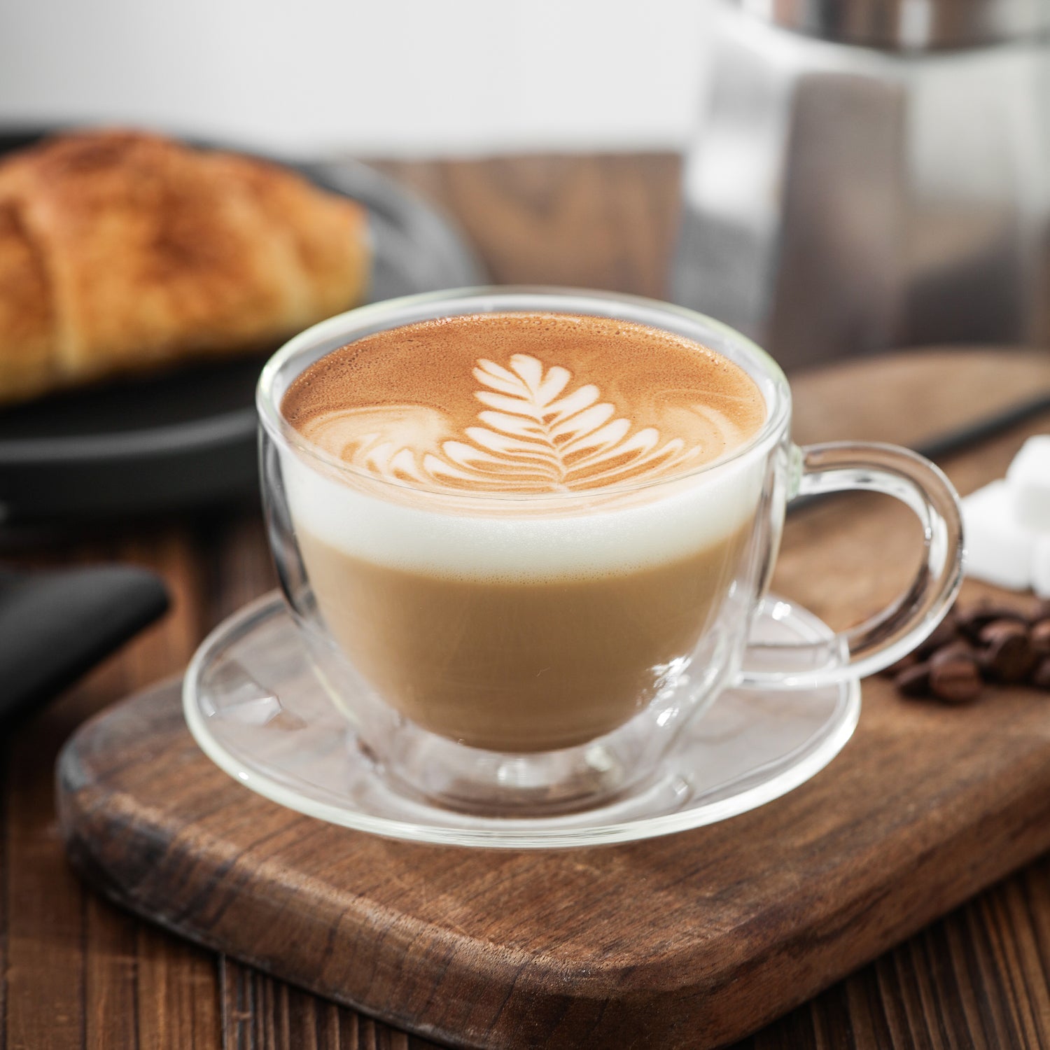 Set of 4 Double Wall Glass Tea Cups With Saucers, 8.6 oz