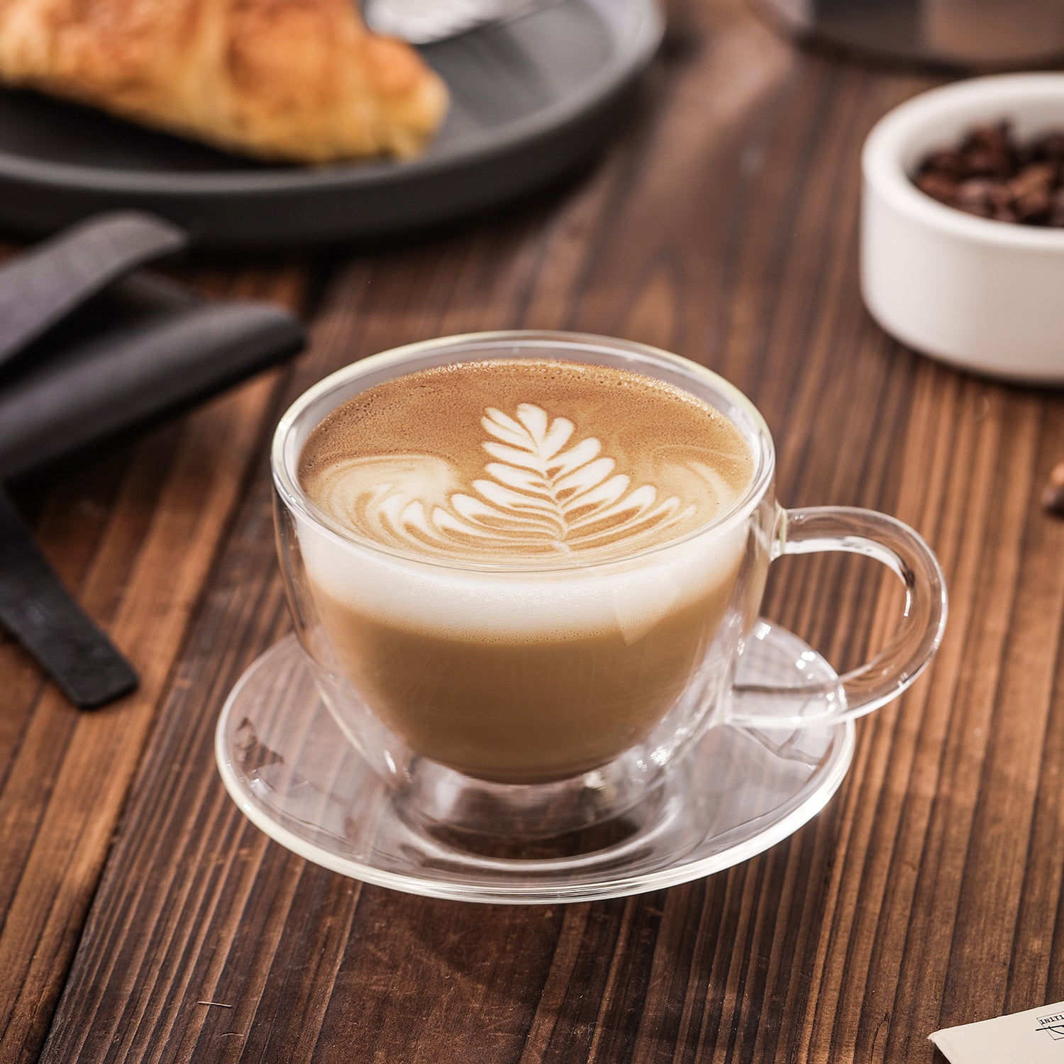 Whether it’s your morning cup of steamy coffee, or an evening glass of soothing tea, the Oriana is exactly what you need. This set of large 12 oz. glass mugs are perfect for serving a foamy cappuccino or herbal tea. The double-wall retains heat and allows you to hold the mug without scalding your hands. The contours are sleek and stylish. The matching saucers complete the proper tea set experience. Made in China of borosilicate glass.