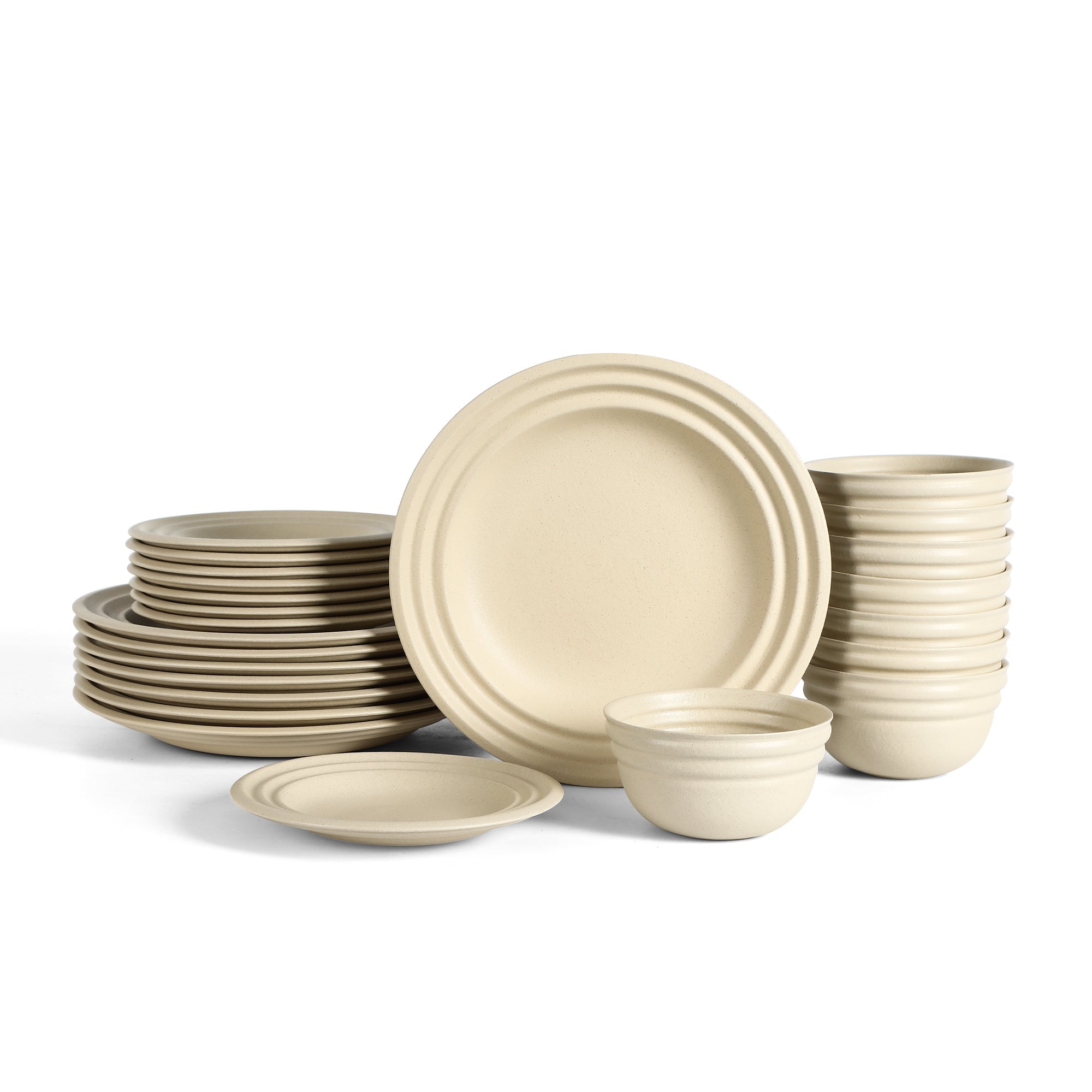 Whether you're unwinding at your beach house or enjoying a meal in the city, the Zen dinnerware collection by Stone Lain creates a stylish, serene atmosphere. Crafted from Stoneware with a textured, sand-like finish and gently grooved edges, this set brings the soothing beauty of nature to your table. With its perfect blend of artistry and practicality, Zen is both microwave and dishwasher safe, making it ideal for everyday use. The Zen collection comes with salad plates, dinner plates and bowls.